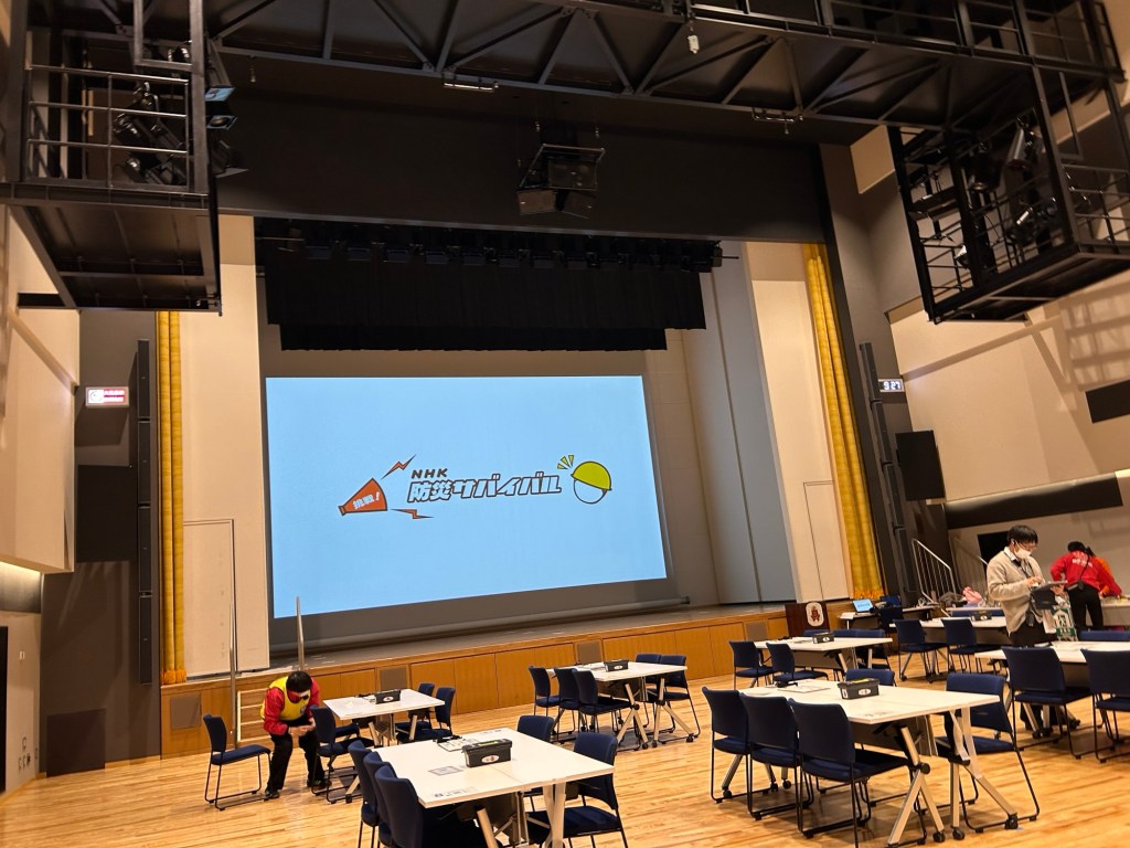 疲れは取れていないまま、朝は港区民ホールを使って開催される「NHK防災サバイバル」の見学へ。田中小学校の5年生に混ぜてもらい、防災担当の課長と校長先生とチームを組んでミッションにチャレンジした。