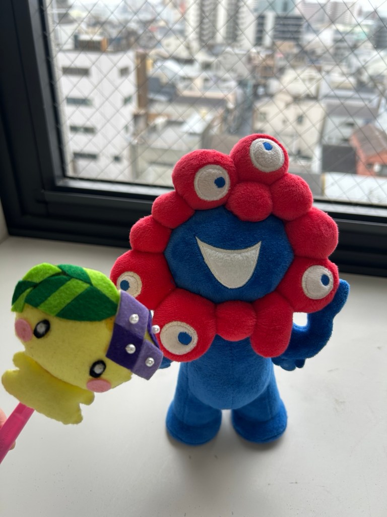 生野区の区長室から持ってきて、開けてなかった箱を整理する。私がInstagramを始めたら生野区のキャラクター「いくみん」と一緒に撮れるようにと広報担当が作ってくれた、持ち手つき人形が出てきた。懐かしい。ミャクミャクと撮影する。