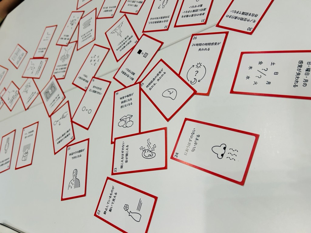 私のテーブルでは介護に直面している方がいて、認知症の人の世界の見え方を知り、明日からの接し方を変えたい、と学びを持ち帰っていた。